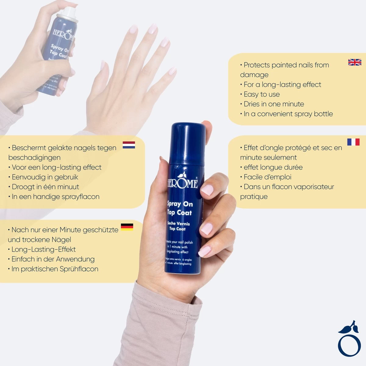 Beschadigen jouw nagels ook altijd zo snel na het lakken? Gebruik dan de Spray On Top Coat voor beschermde én droge nagels binnen één minuut!