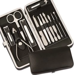 De 12-delige manicure en pedicureset in een prachtige opbergetui. De accessoires zijn vervaardigd uit roestvrij staal, voelen zeer degelijk aan en zijn ideaal voor iedereen die thuis of op vakantie een manicure of pedicure wil toepassen. Reisset Nagelverzorging Set Voor Manicure & Pedicure