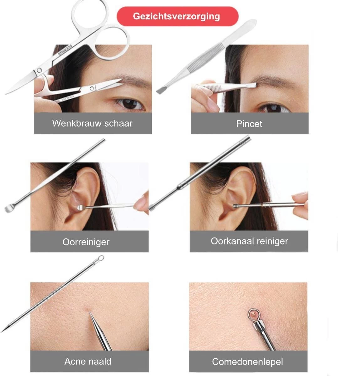Naast de reguliere pedicure en manicure onderdelen. Bevat de set ook enkele handige hulpmiddelen om je oren en gezicht onder handen te nemen. Veel completer kan een set niet zijn.