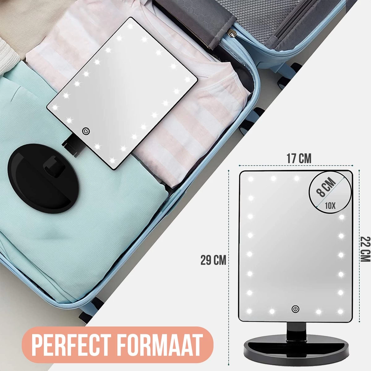 Strex Make Up Spiegel Met LED Verlichting – 3 Verlichtingsmodus – 1/10x Vergroting – 360° Verstelbaar