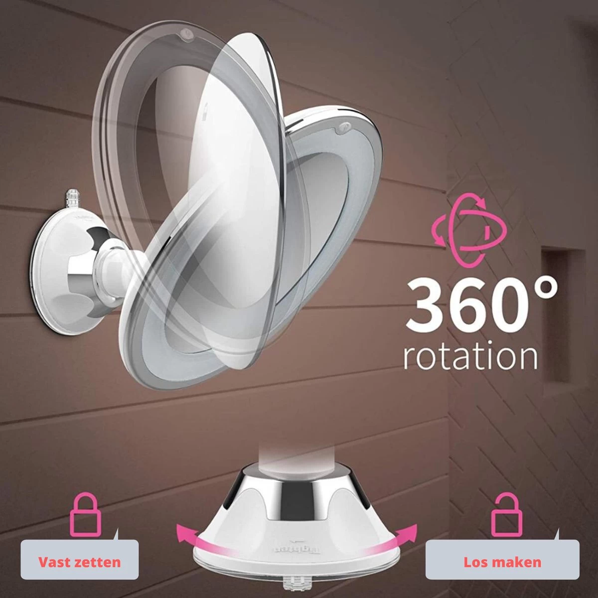 Dankzij de de 360° graden draaibare voet kun je de spiegel in de voor jou ideale positie zetten zonder hem constant vast te hoeven houden. Je kunt erop vertrouwen dat de spiegel in positie blijft terwijl je bezig bent met je dagelijkse verzorging!